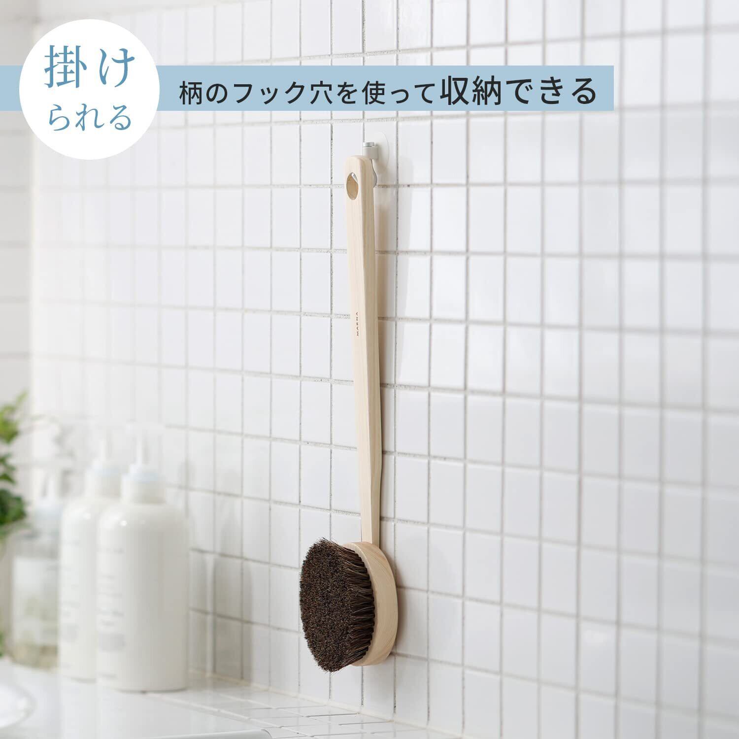 マーナ (marna) ひのきボディブラシ 長柄 ( 馬毛 / 柄付き / 日本製 ) 背中 ブラシ (背中洗いやすい / 取り外し可能) ボディーブラシ B662