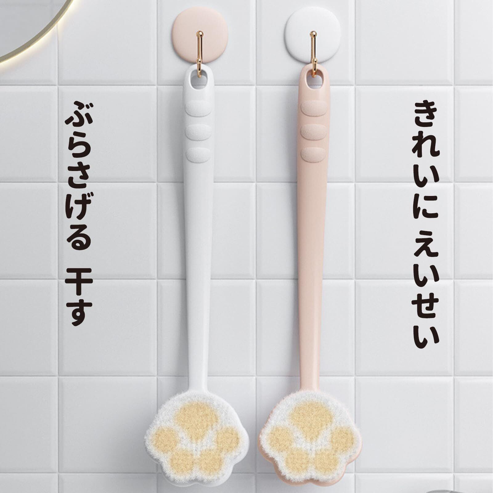 【可愛いデザインと高機能!】猫爪を模したキュートな形状が特徴で、見た目にも楽しさをプラスしています。クランク状の持ち手は背中にフィットし、取扱いがとても簡単。手の届きにくい場所もスムーズにケアでき、リラックスした入浴タイムを楽しむことができます。