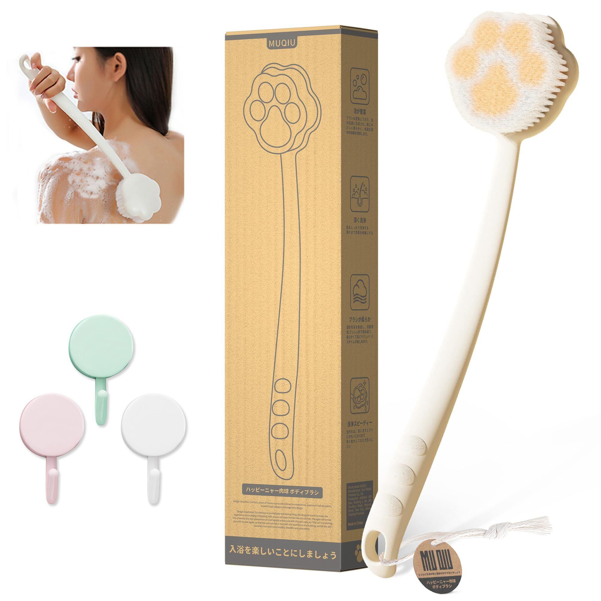 【新着商品】[MUQIU] ボディブラシ ボディブラシ 柔らかい 背中 バックケア 超極細毛 て肌にやさしい クランク 持ちやすい きゅうそくはっぽう 背中にフィット【可愛い 猫爪形状】カビがつきにくい 乾燥しやすい 洗浄しやすさ 無菌 防臭