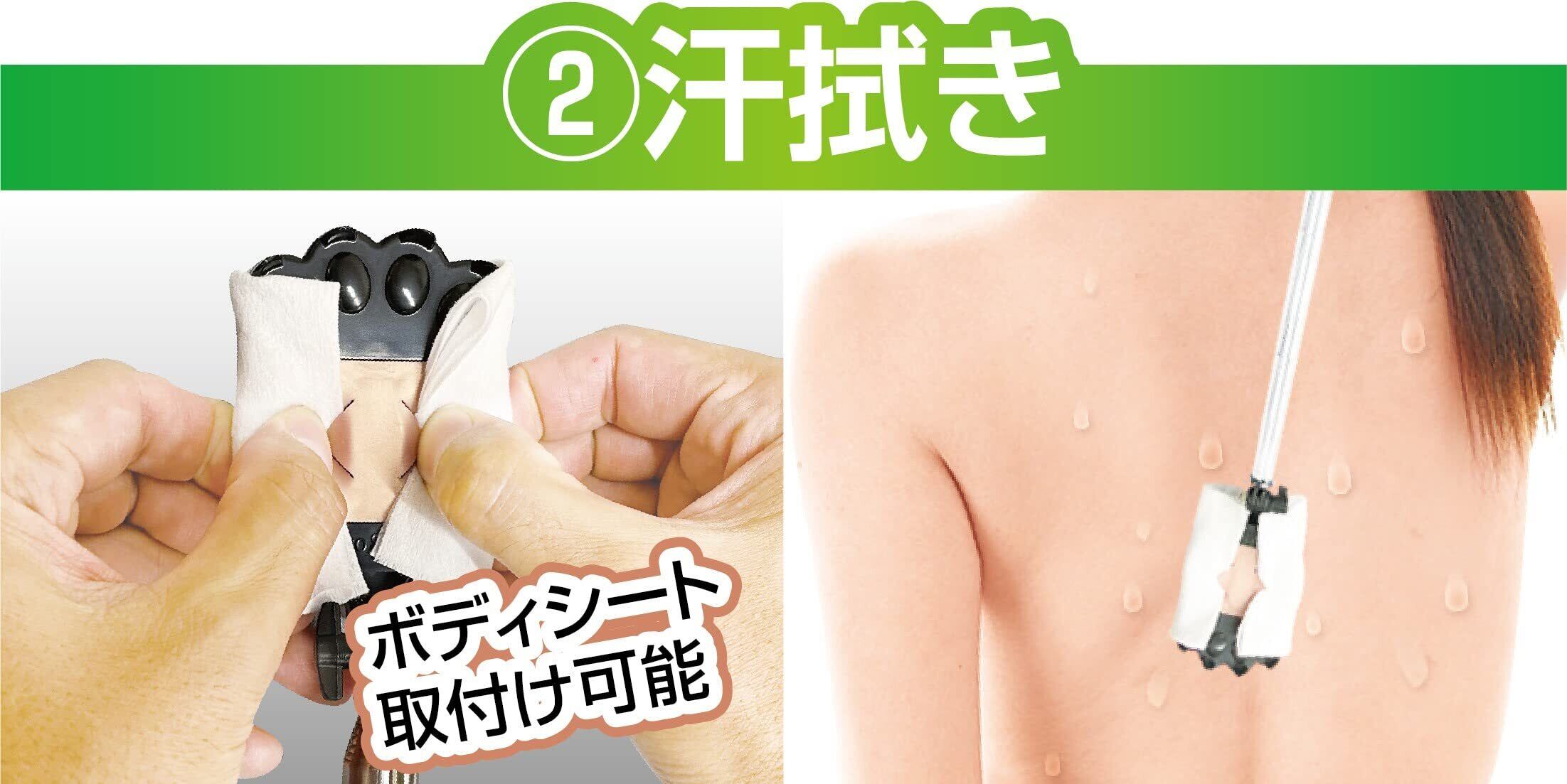 ボディシートをつけて背中の汗拭きや化粧水やクリームの背中に塗るのにも。