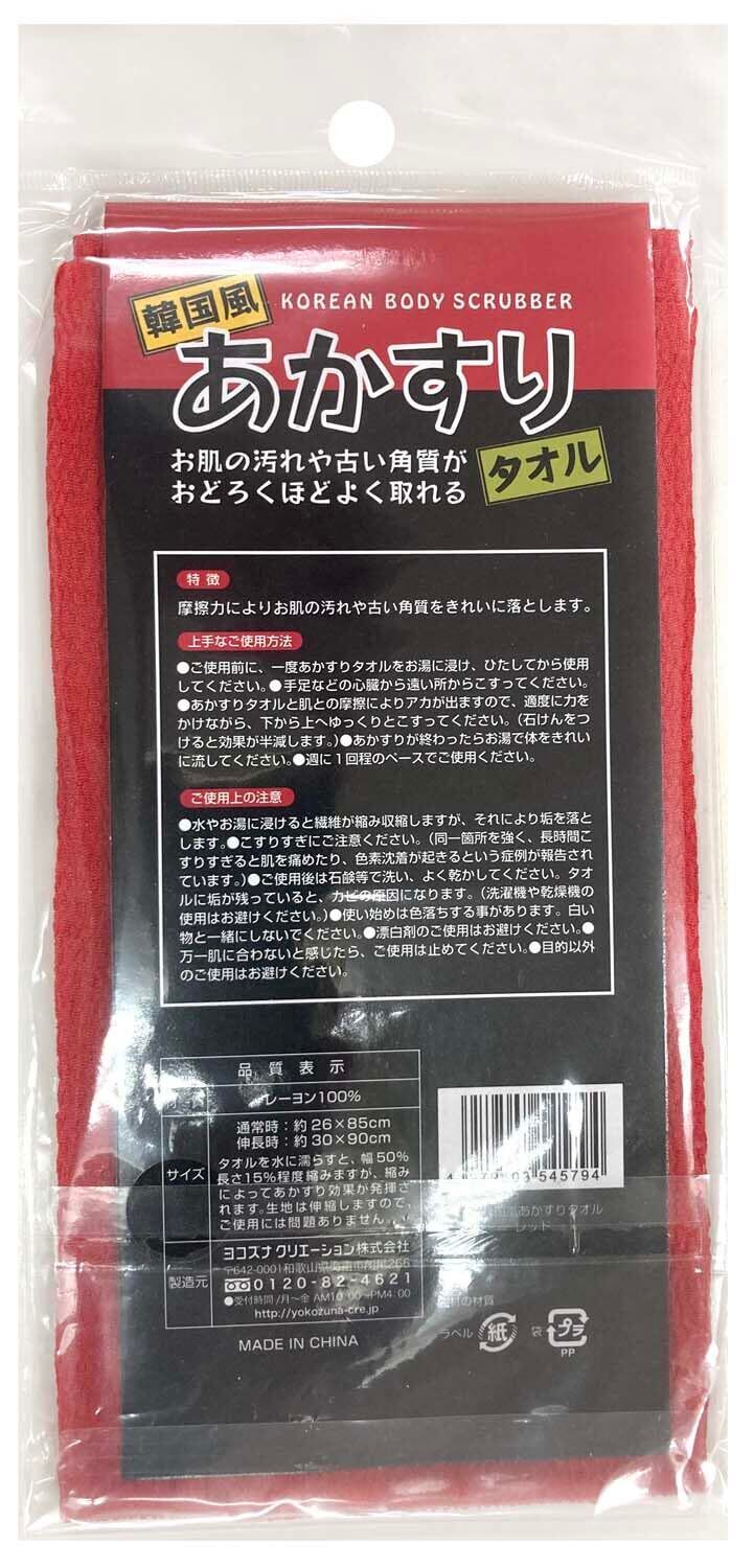 ヨコズナクリエーション FY 韓国風 あかすりタオル 古い角質がよく取れる 26×85cm