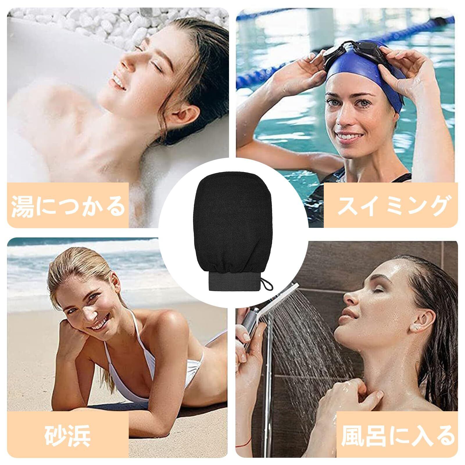 あかすり 手袋 お風呂手袋 ボディウォッシュ手袋 搓澡巾 垢すり手袋 肌に優しい 角質取り 垢擦り 両面の 繰り返し使用可能 お風呂 浴用 手袋 入浴用品 男女兼用 ブラック