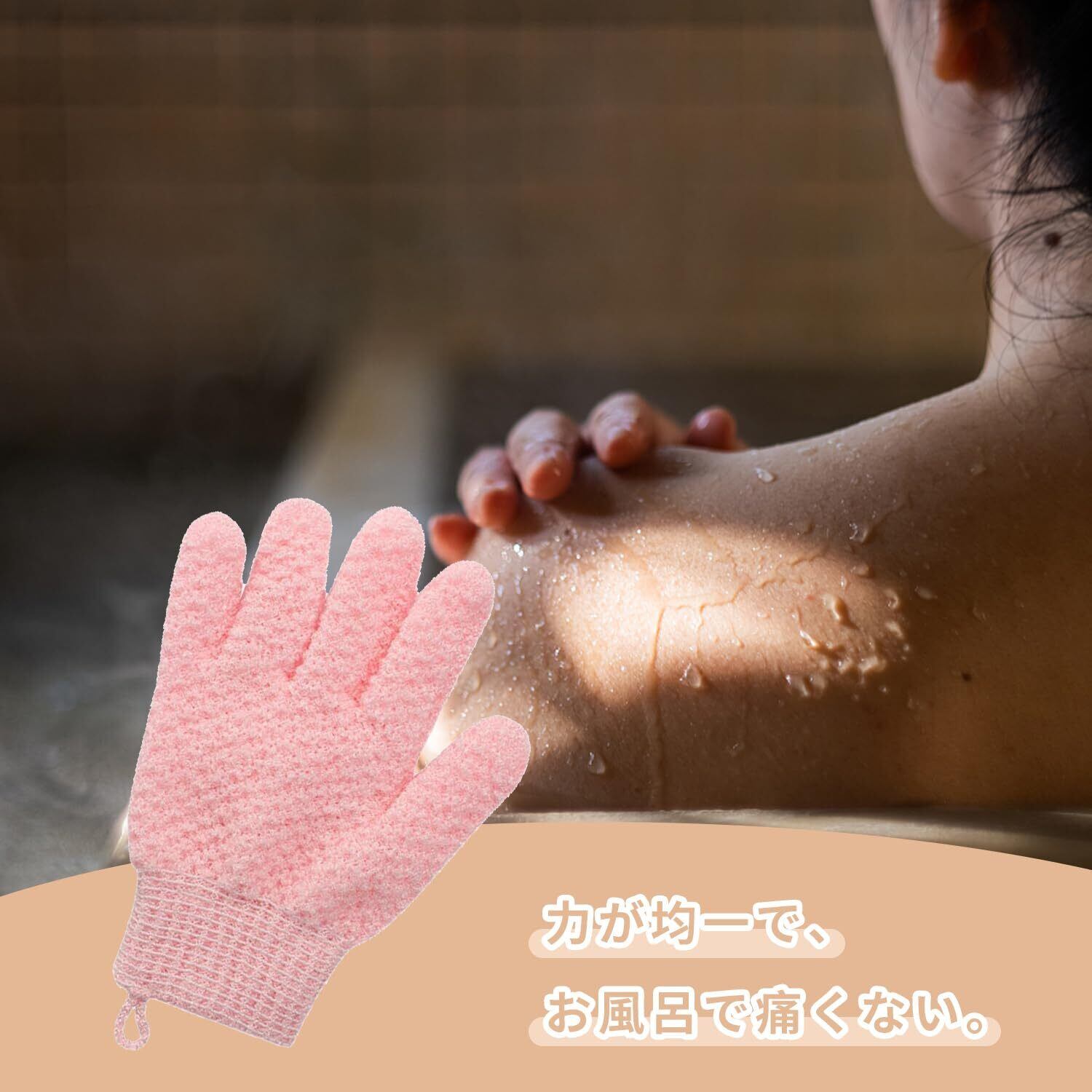 【自宅で本格的なスパ体験!】「あかすり手袋」は、毎日の入浴を特別な時間に変えるアイテムです。2個セットなので、家族みんなで使えるのも嬉しいポイントです。お風呂で気軽に古い角質を除去し、透明感のある美しい肌を手に入れましょう。