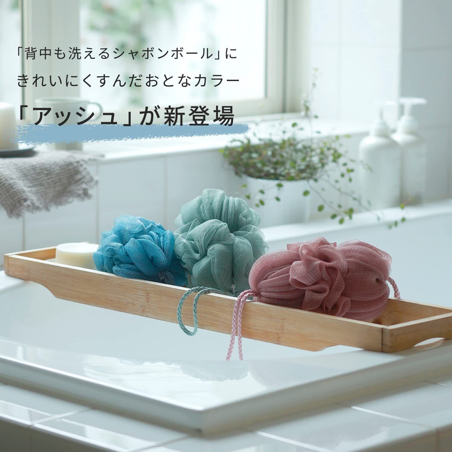 マーナ (marna) ボディスポンジ 背中も洗えるシャボンボール (伸縮/たっぷり泡立つ) 濃密な泡立ち ぐーんとのびる (体洗うタオル/お風呂 タオル) やわらかめ モスグリーン 3個セット R548G