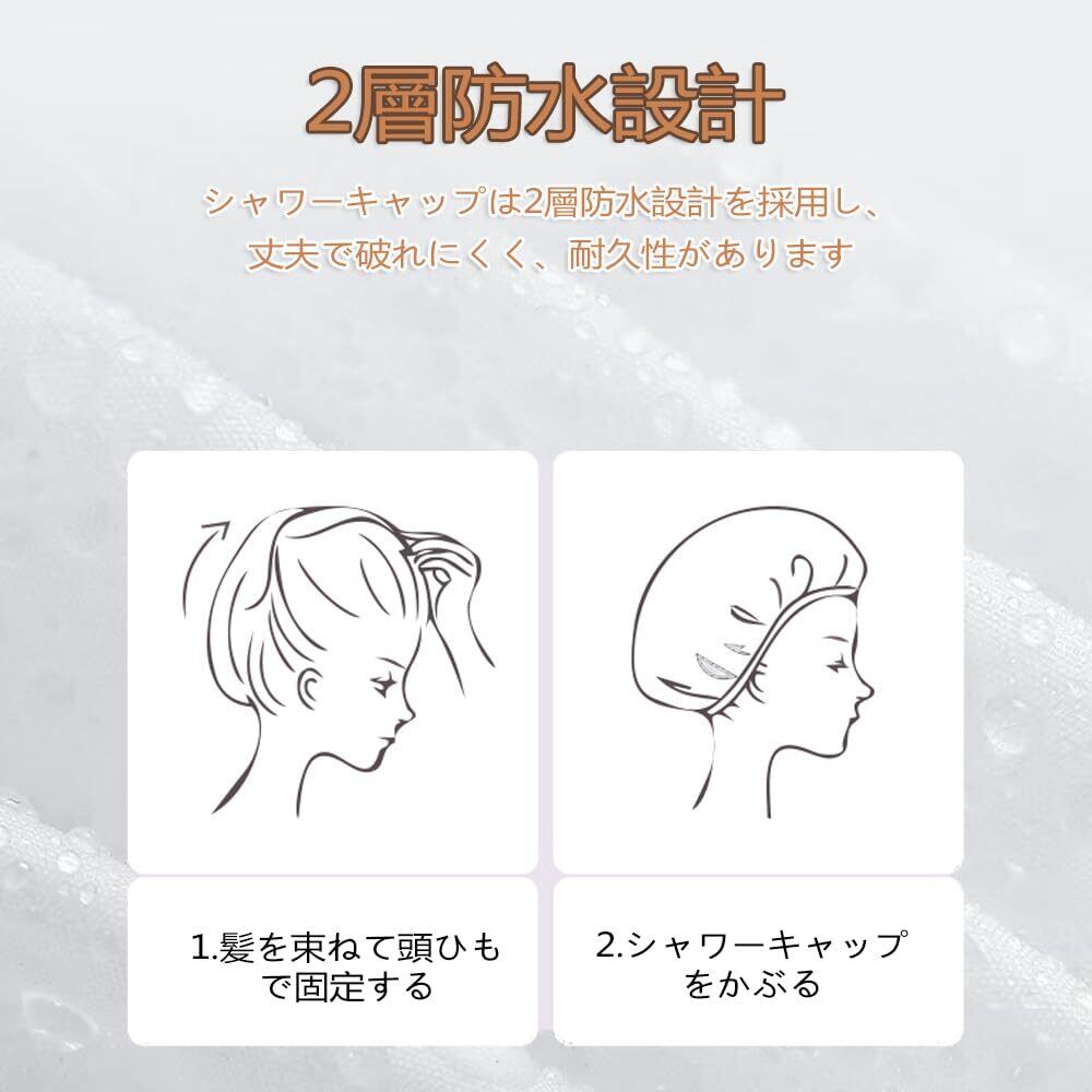 【2層防水設計】シャワーキャップは2層防水設計を採用し、丈夫で破れにくく、耐久性があります。シャワーや入浴時に髪が濡れるのを効果的に防ぎます。さらに、高品質な素材を使用しているため、繰り返し利用することができます、経済的で環境にも優しいです。