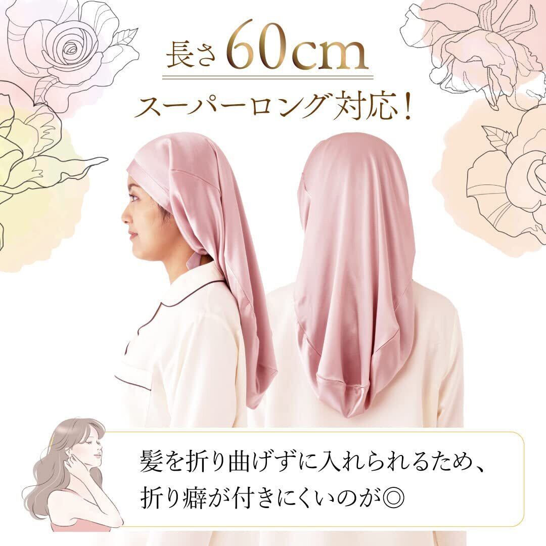 【ロングヘアに対応】本製品の長さは60cm。最高級6Aランク19匁天然シルク100%の生地をたっぷりと使用しており、ロングヘアの方に快適にご利用頂けます。