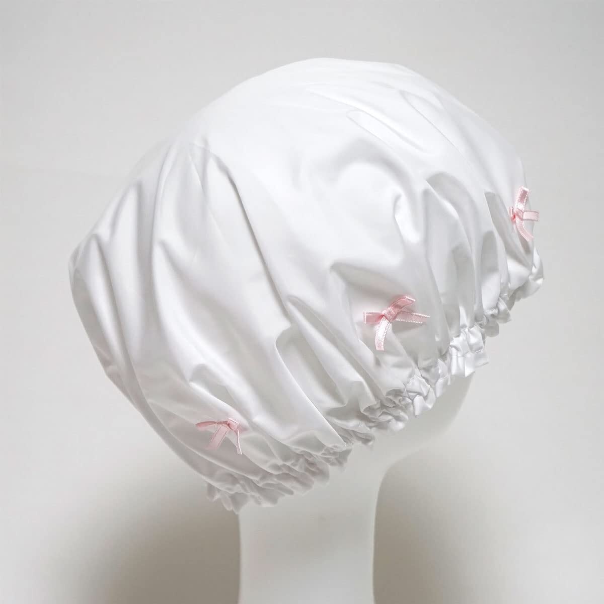 リボン付き シャワーキャップ ホワイト リボンピンク 日本製