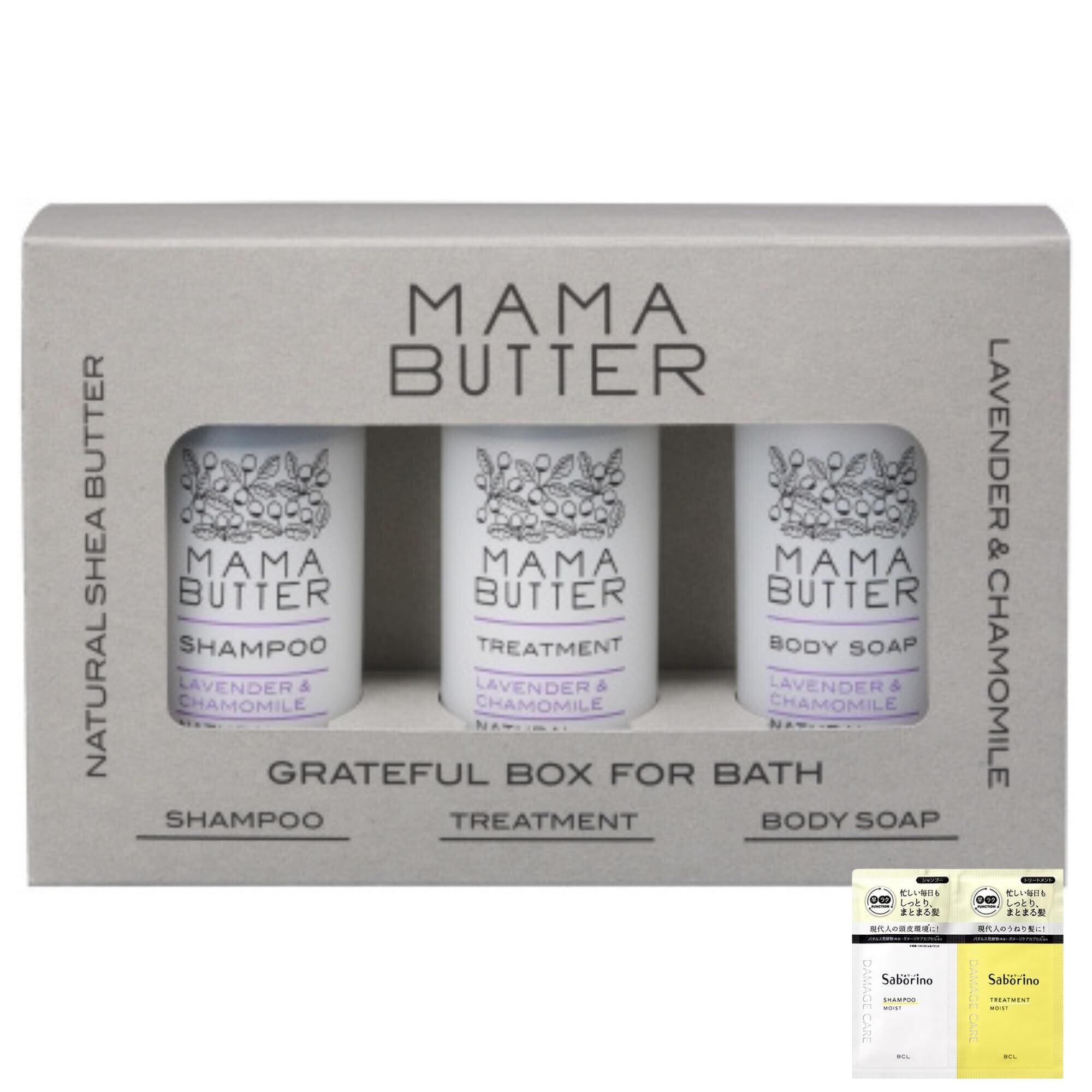 ママバター グレイトフルボックス フォーバス(シャンプー&トリートメント&ボディソープ各種50mlセット)ラベンダー&カモミールの香り【お試しサンプル付き】