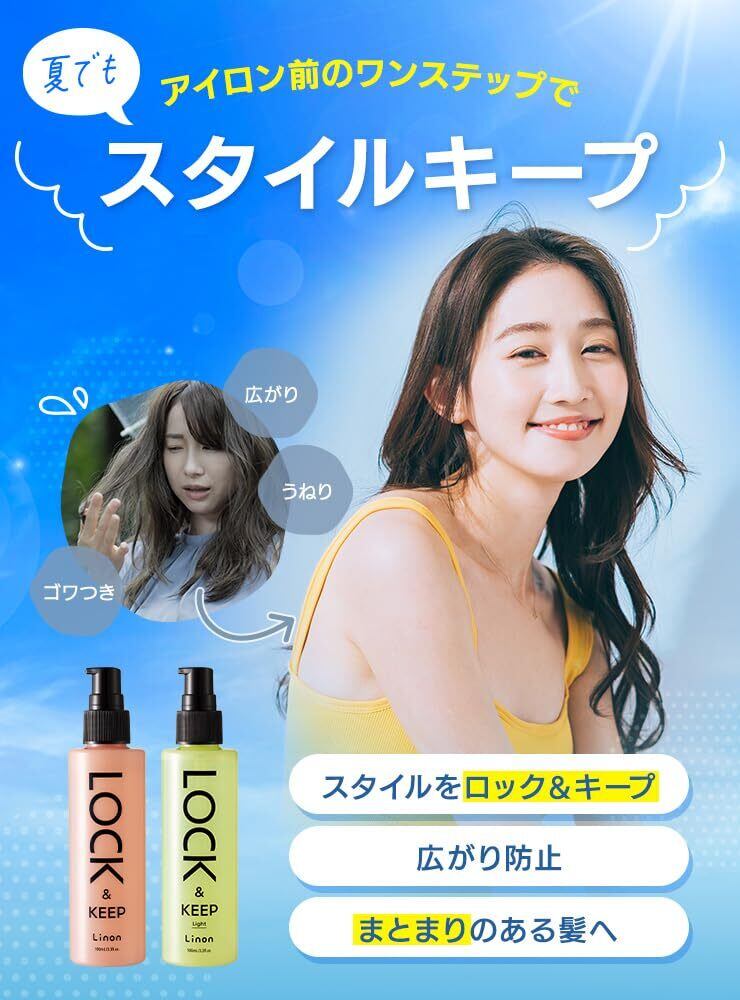 【熱を活かしたスタイリング革命!】「リノン ロックオイル」は、アイロン専用設計のスタイリングオイルで、髪に熱を加えることでよりしっかりとしたカールをキープします。美しい仕上がりを長時間維持し、髪のダメージを抑えます。