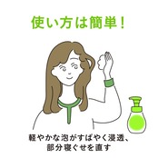 【しっかりとしたケア&整髪力!】この寝ぐせ直しは、髪に優しい成分を使用しており、パサつきを防ぎつつ、柔らかくまとまる髪に導きます。泡状なので、均一に付けやすく、髪の表面をきれいに整えます。スタイリング時の髪にやさしく、手触りの良さも実感できます。