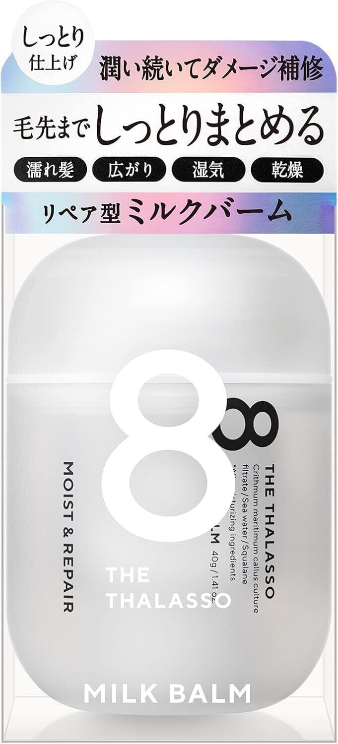 【潤いを与えながら髪を修復するミルクバーム!】「エイトザタラソ モイスト&リペア ミルクバーム」は、しっとりとした質感をもたらしつつ、ダメージを受けた髪を優しく修復するアイテムです。特に乾燥が気になる時期にぴったりで、手軽に使用できるスムーズなテクスチャーが特徴です。