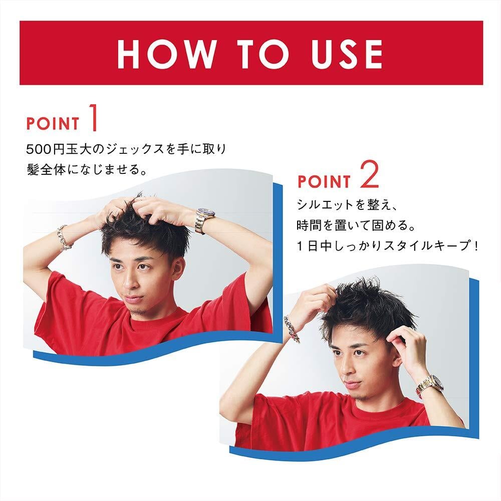 【POINT①】 ジェル特有の速乾を防ぎ、すぐに固まらない処方だから、ジェル初心者でも扱いやすい! 固まる前に、じっくりスタイリングが楽しめます。 乾いたあとはべたつかず、一日中スタイルをキープ。 これ1本で、思い通りのスタイリングを。