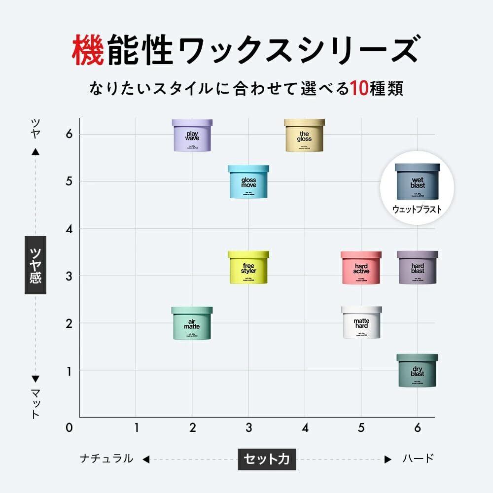 【ツヤ感と濡れ感を自在にアレンジ!】LIPPSのウェット ブラスト ワックスは、ハードなセット力を持ちながら、濡れたような艶を与えることができ、魅力的なスタイルを一日中キープします。適度な束感を出しつつ、軽やかな動きを維持できるため、インパクトのある髪型に仕上がります。