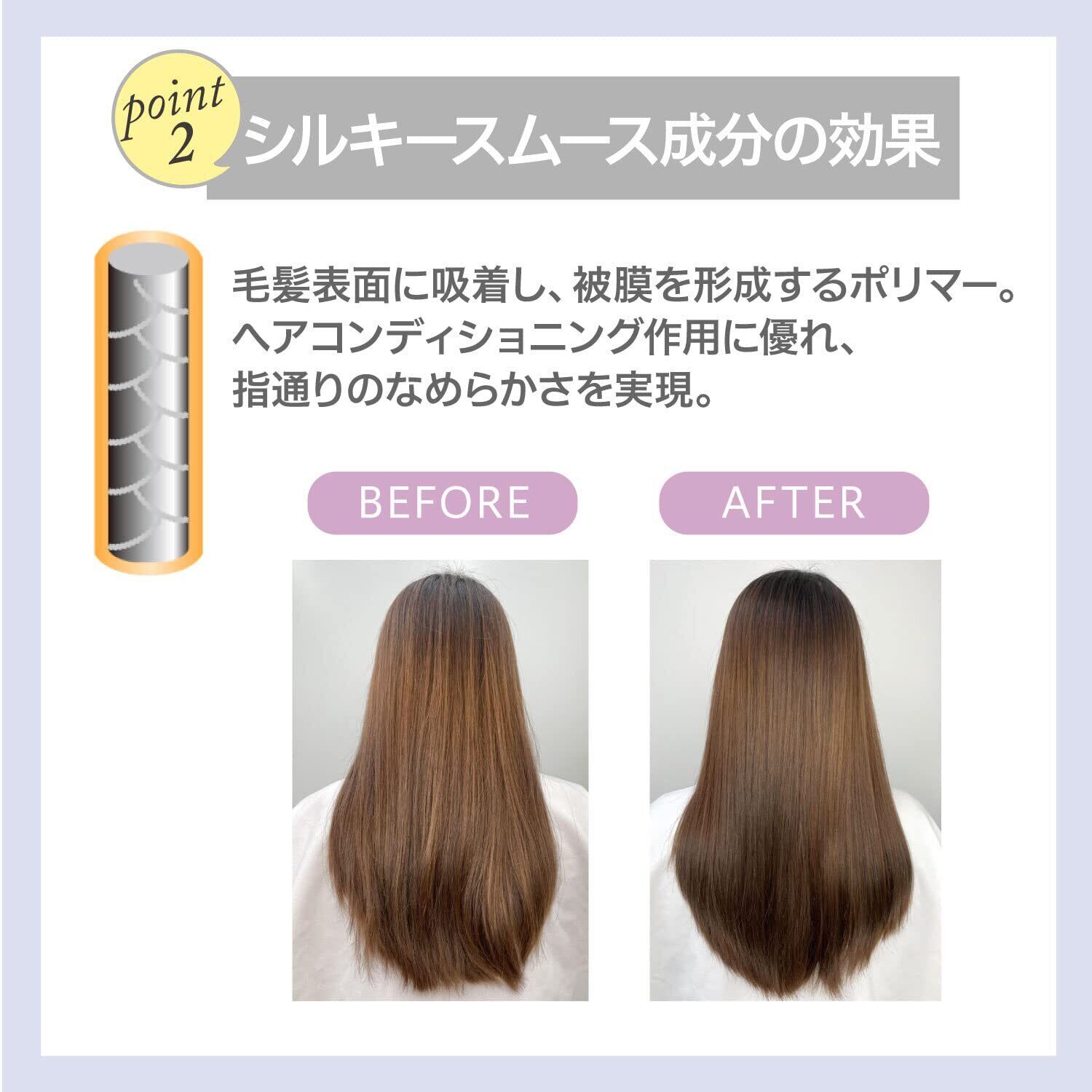 ヘアコンディショニング作用に優れた「シルキースムース成分」を配合。髪のうるおいをキープし、指どおりなめらかな髪へ導きます。