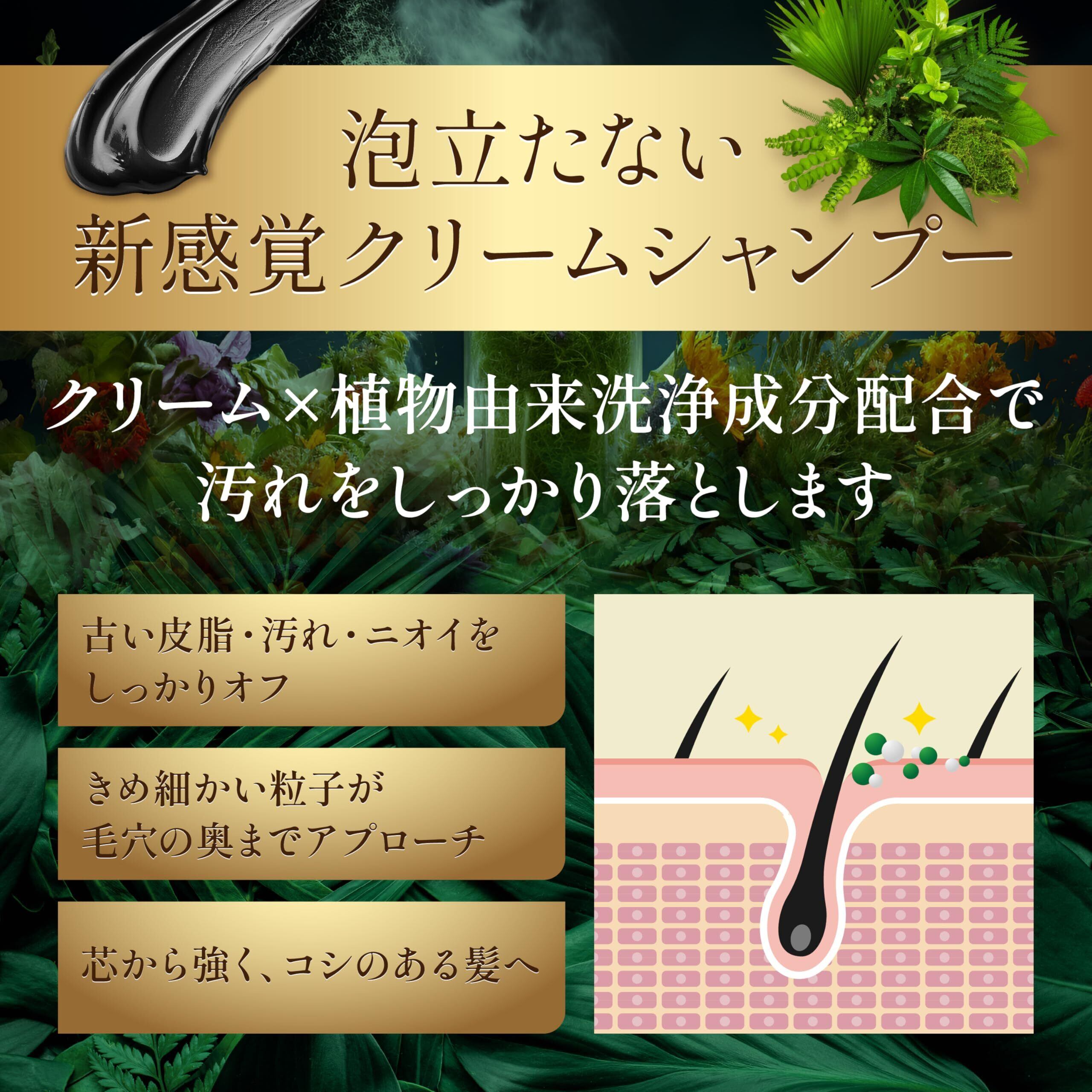 【40種のボタニカルエキスと毛根幹細胞培養液配合】植物由来の優しい洗浄成分と40種類のボタニカルエキスを贅沢に配合。また最近毛髪業界注目の成分である毛根幹細胞培養液も配合しております。pH値は理想的な4~6の弱酸性を採用しており、カラーリングと洗浄力の理想のバランスを目指しました。