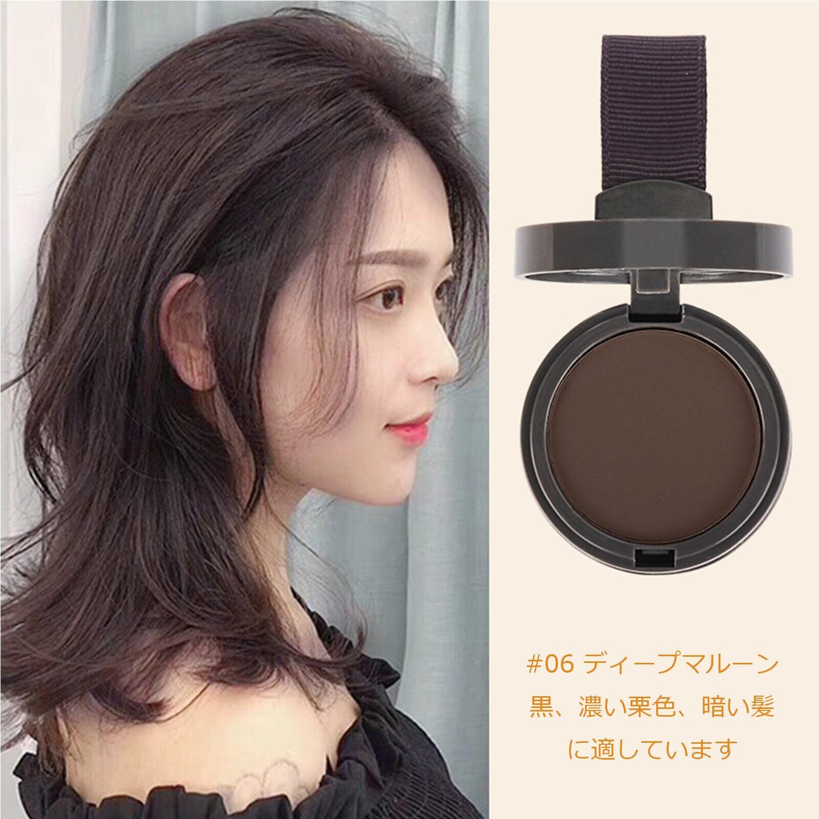 生え際パウダー、根元タッチアップマジカルヘアシャドウパウダー、瞬時に生え際シャドウカバーアップ、パフタッチ付き毛根コンシーラー、薄毛/ハゲ毛用根元カバーアップ、女性/男性用ヘアパウダー-ブラウン06#ダークマルーン