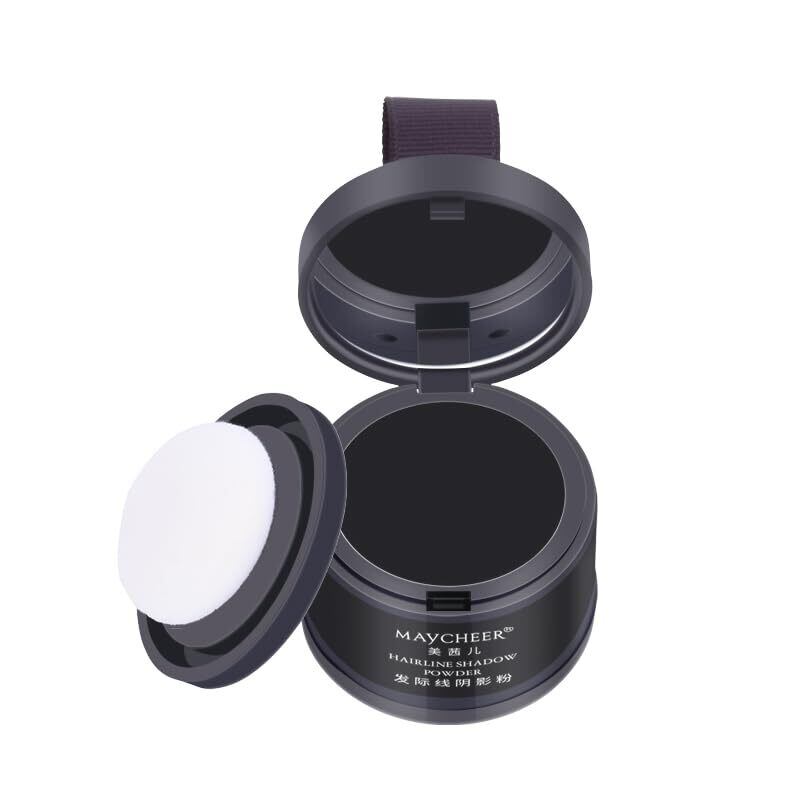 【特価セール】生え際パウダー、根元タッチアップマジカルヘアシャドウパウダー、瞬時に生え際シャドウカバーアップ、パフタッチ付き毛根コンシーラー、薄毛/ハゲ毛用根元カバーアップ、女性/男性用ヘアパウダー-ブラウン5#ブラック
