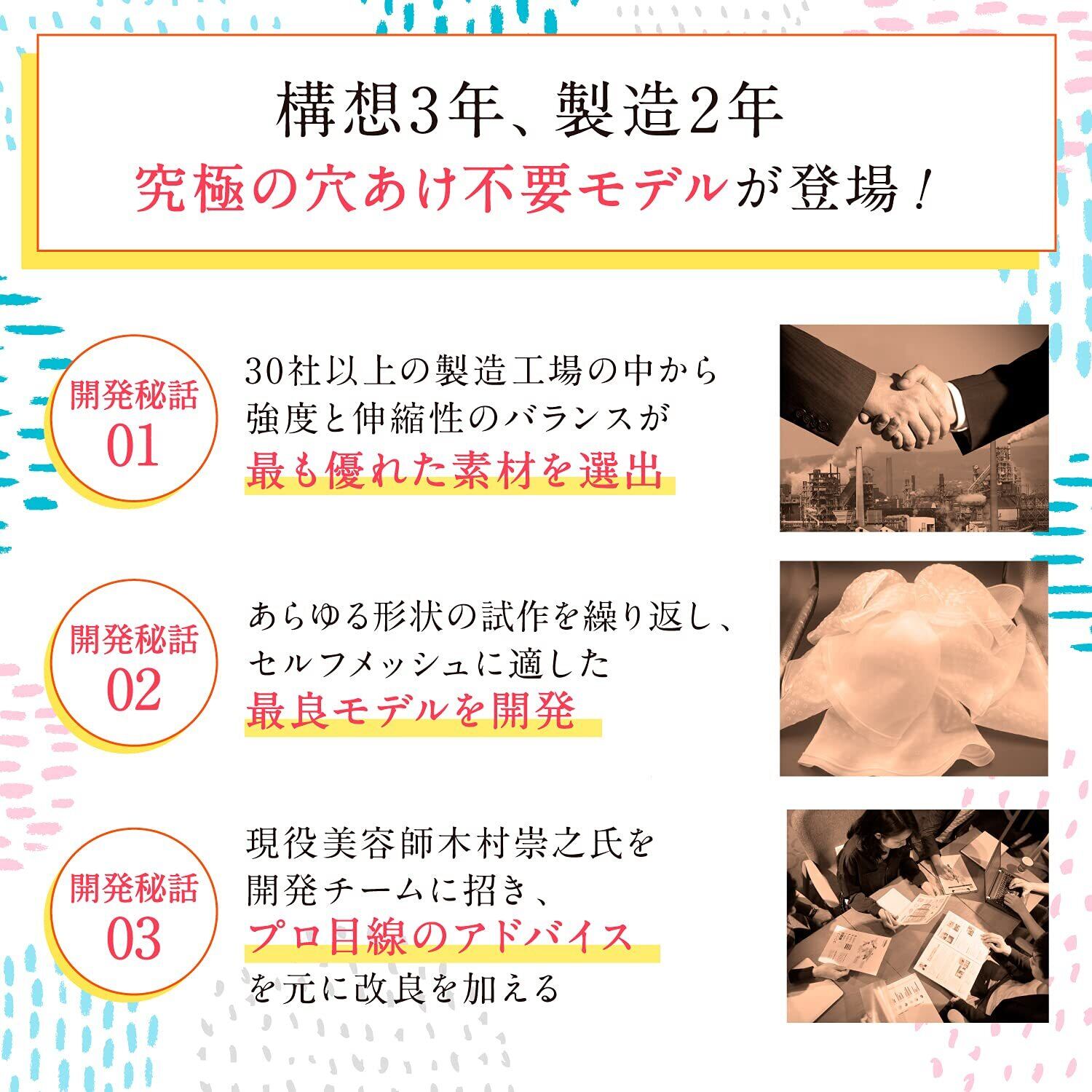 【使いやすさ抜群のデザイン!】穴あき済みのメッシュキャップは、必要な場所にスムーズにカラーリングが行えます。自宅で簡単にサロン帰りのような仕上がりを目指せるので、毎日のスタイリングが楽しくなります!