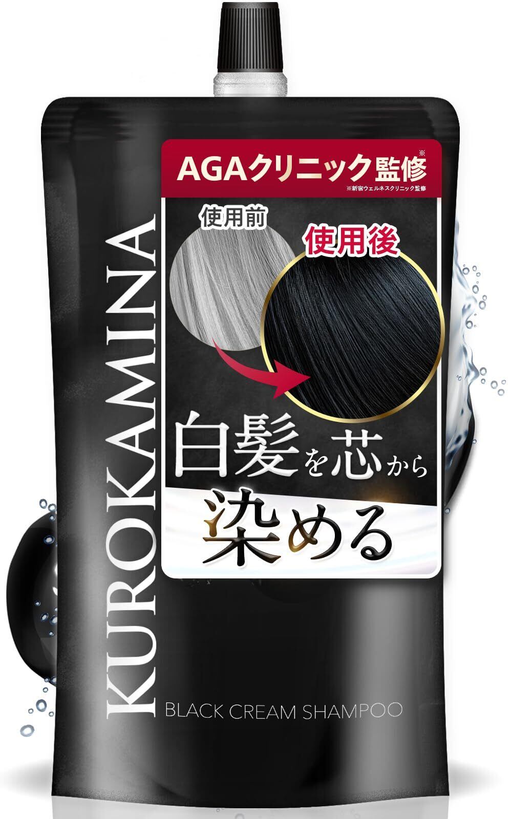 【AGAクリニック×製薬会社 共同開発】KUROKAMINA クリームシャンプー 白髪用シャンプー カラーシャンプー カラートリートメント ボタニカル 敏感肌用 レディース メンズ ブラック 300g (1袋)