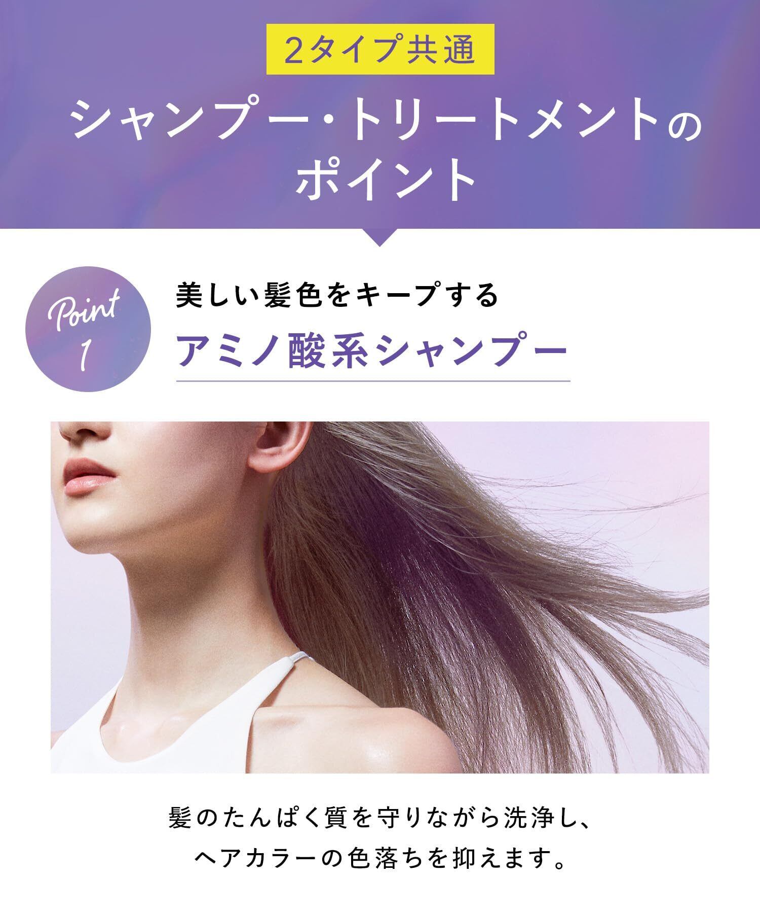 【色落ちを抑える】アミノ酸系洗浄成分が髪のタンパク質を守りながら洗浄し、カラーした髪の色落ちを抑えて、美しい髪色をキープ