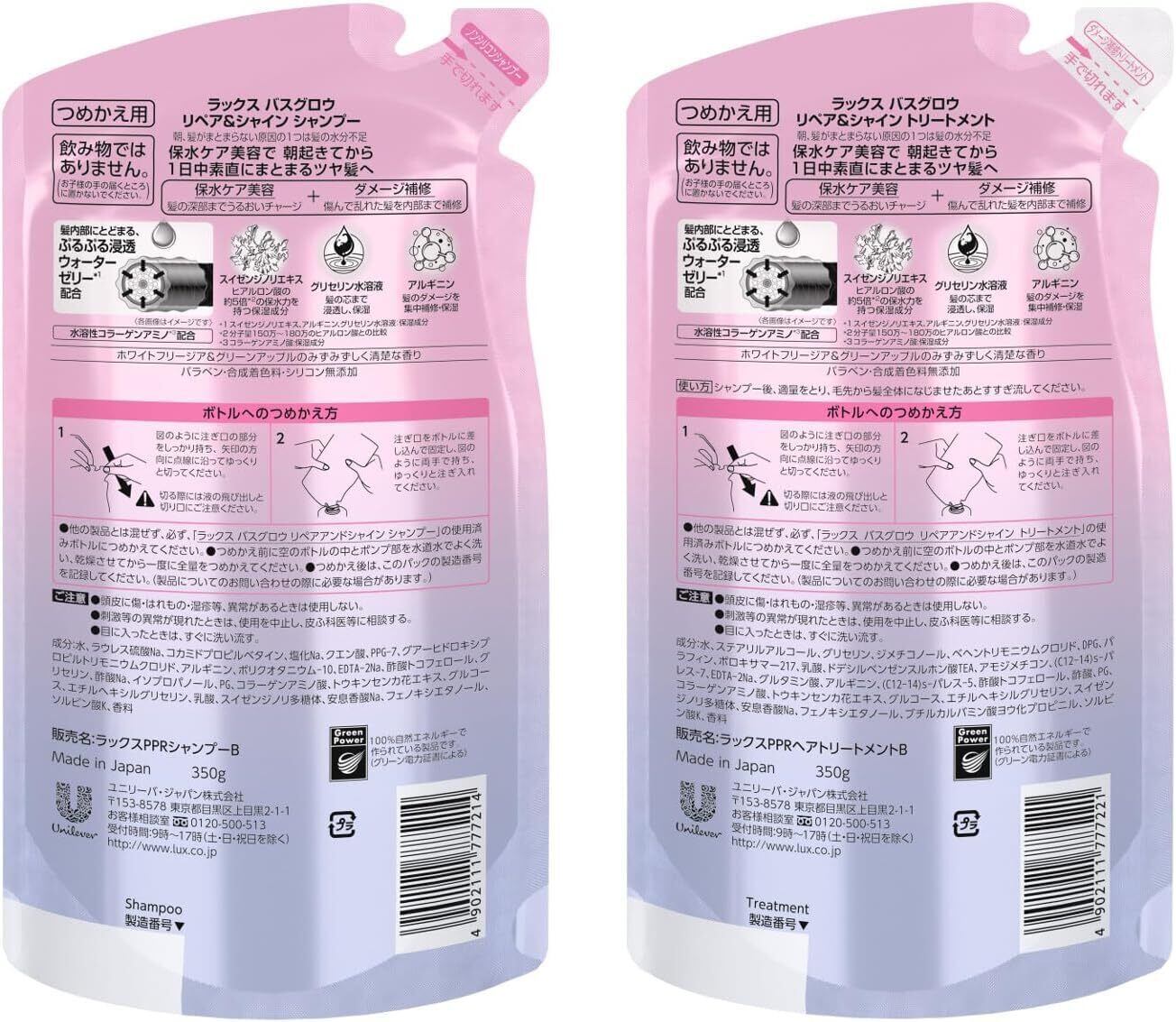 LUX(ラックス) 【セット買い】 バスグロウ リペアアンドシャイン シャンプー+コンディショナー(トリートメント) 詰め替え用 ペア 各350g 保水美容 美容アミノ配合