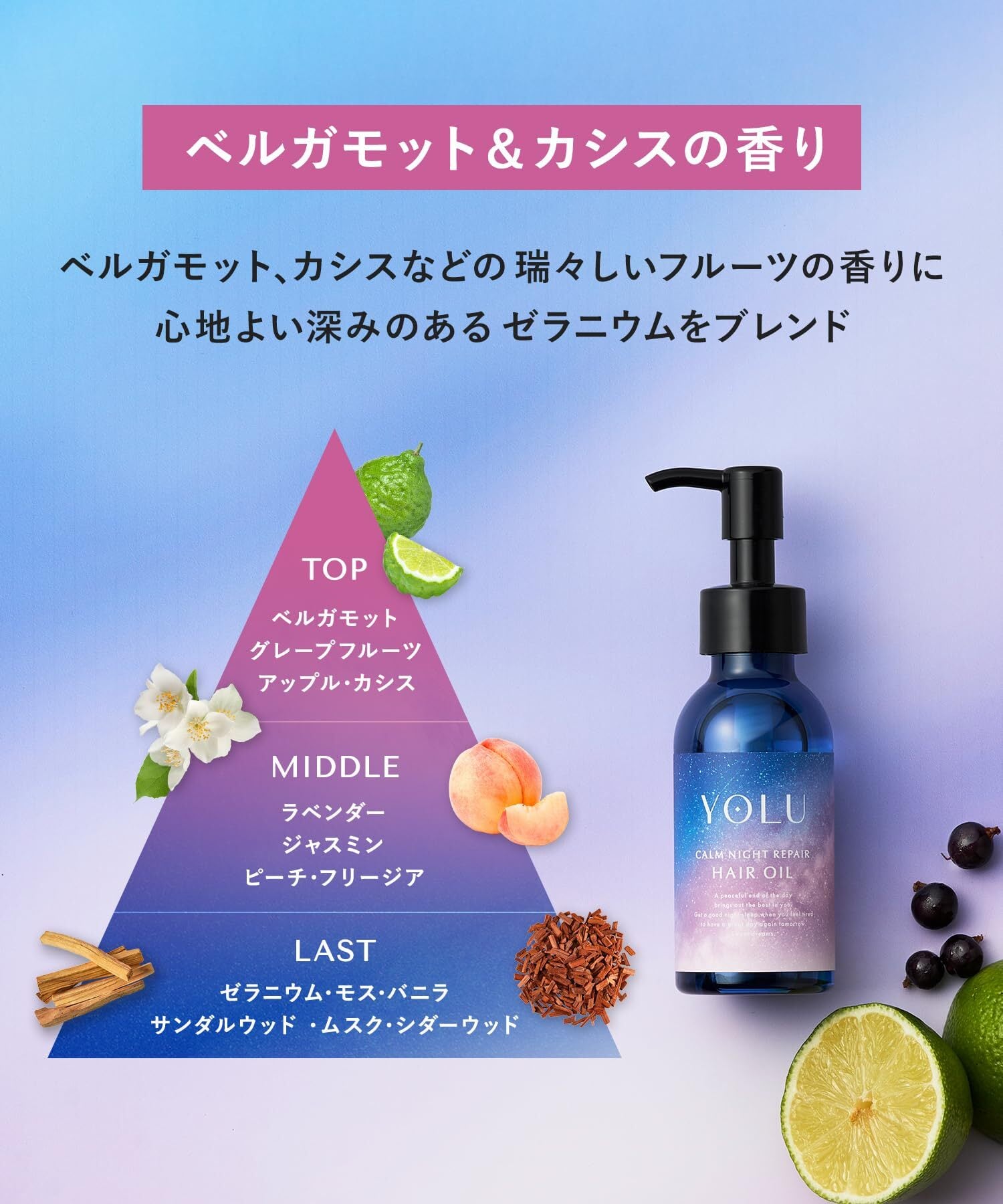 【深い潤いで髪を癒す】YOLU ヨルのシャンプー、トリートメント、ヘアオイルの3点セットは、カームナイトリペア処方でダメージを受けた髪をしっかりと修復し、しっとりとした美しい髪へと導きます。毎日の使用で、髪本来の健康を取り戻せる特別なヘアケア体験をお楽しみください。