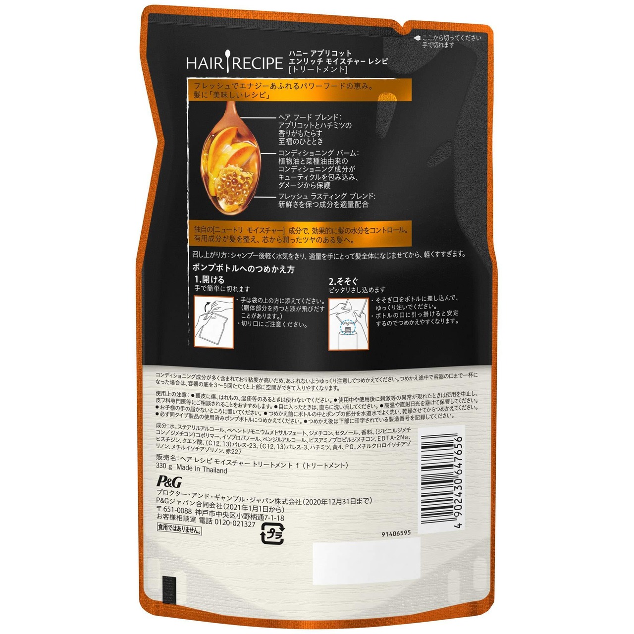 ・ヘアレシピ トリートメント 詰め替え 330g ハニーアプリコットエンリッチモイスチャー