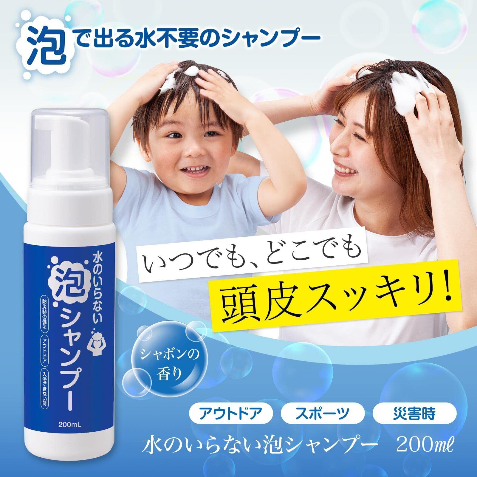 【新着商品】コモライフ 水のいらない 泡シャンプー (約200ml) ドライシャンプー 泡タイプ 洗い流し不要 シャボンの香り 全身にも使える 低刺激 マイルドな洗浄力 アルコールフリー パラベンフリー アウトドア スポーツ 災害時 介護 入院 子供 大人 (使用量目安:ショートカットで約3プッシュ) 【日本製】
