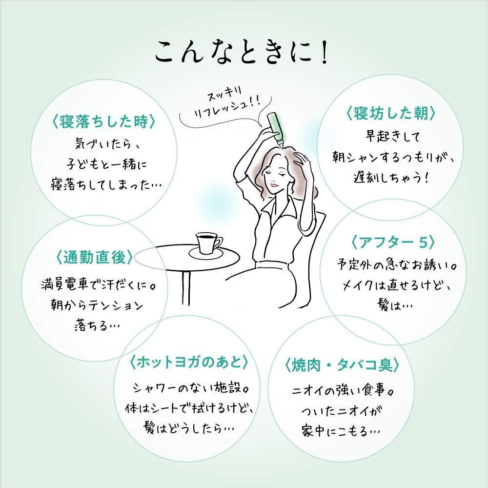 ◆「お風呂は面倒」と考える一方で、「お風呂やシャワー時間以外で、“髪を洗いたい、スッキリさせたい"というときがある」など、多忙な女性の複雑な洗髪意識に着目。休前日でお風呂をサボりたいときや、外出先で髪の「べたつき」、「ニオイ」が気になるときお風呂以外の場所でシャンプーができるという新ヘアケア習慣を提案。