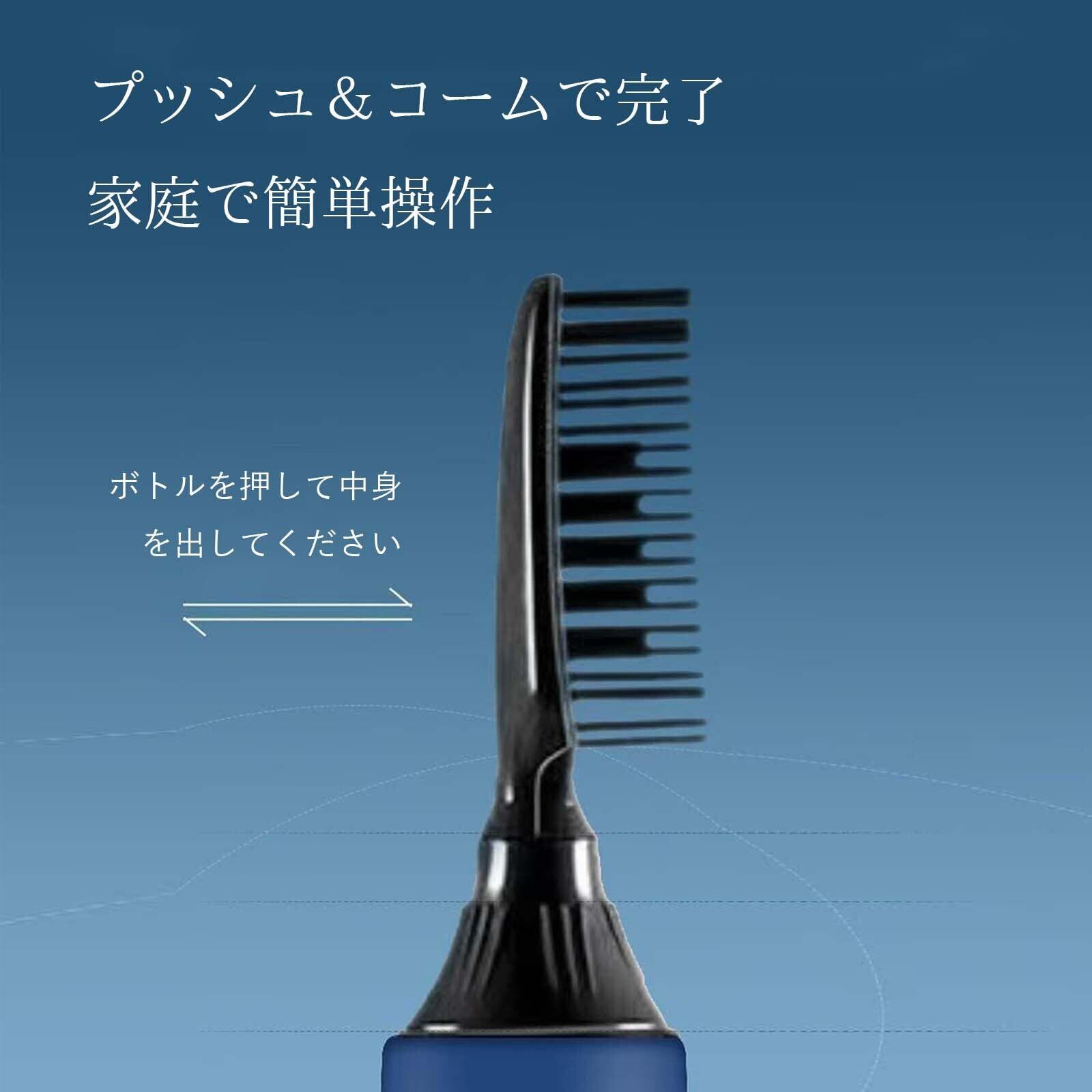コーム付きストレートパーマ液がプッシュ操作で薬剤を直接出し、しゅくもう矯正剤の混合作業不要で美容初心者でも簡単に塗布可能