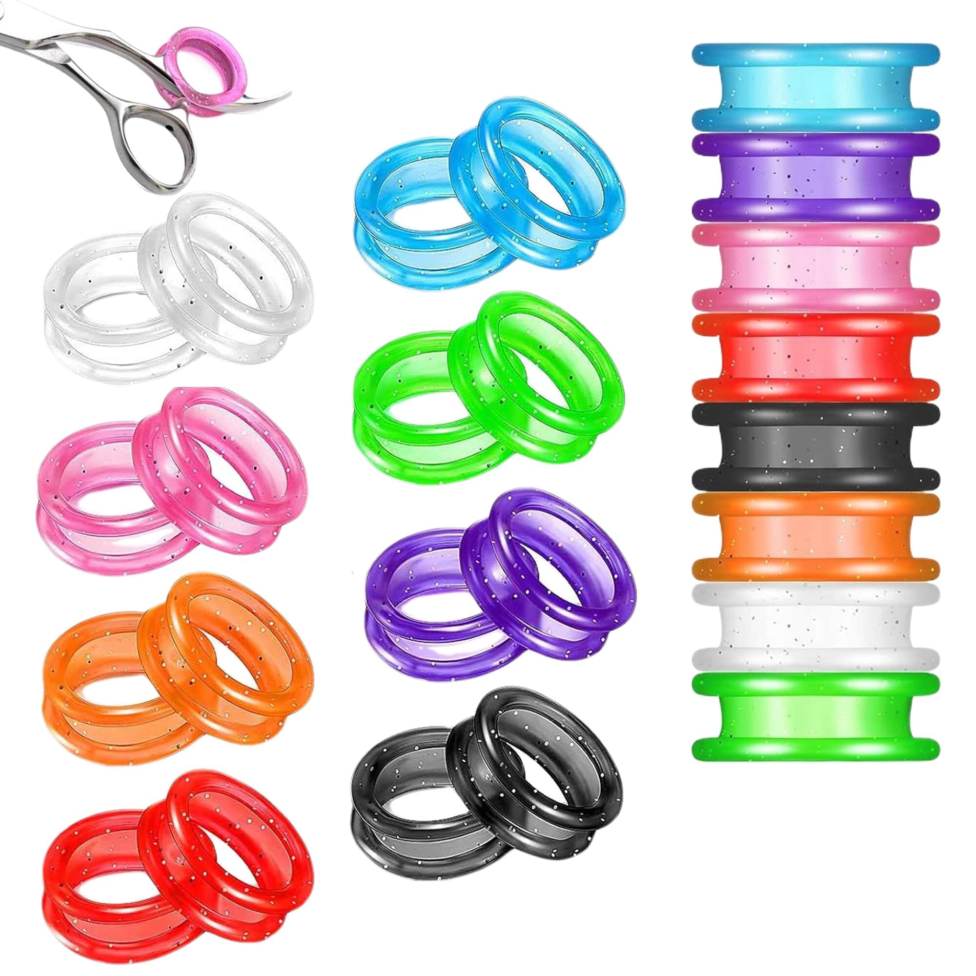 【製品仕様】パッケージには16個のシザーリングが含まれています。サイズ: 外径:25mm、内径:20mm;形状:円形、柔らかくて弾力性があり、各種のサイズのヘアカット ハサミに適しています。