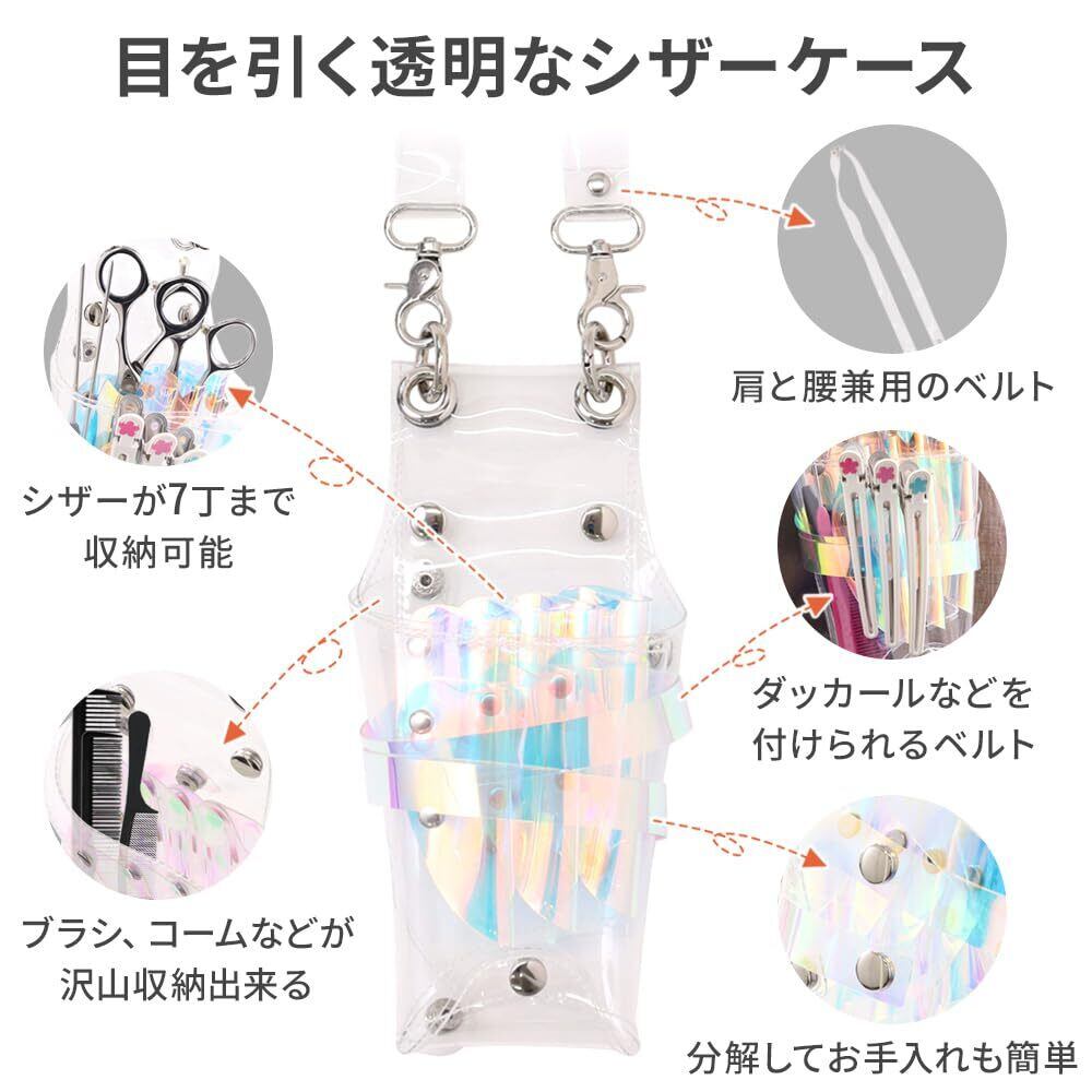 Bonarca シザーケース クリア トリマー 透明 美容師 理容師 ハサミケース 腰 肩 ベルト 肩掛け プラスチック シザー 7丁 大容量 収納 分解 お手入れ