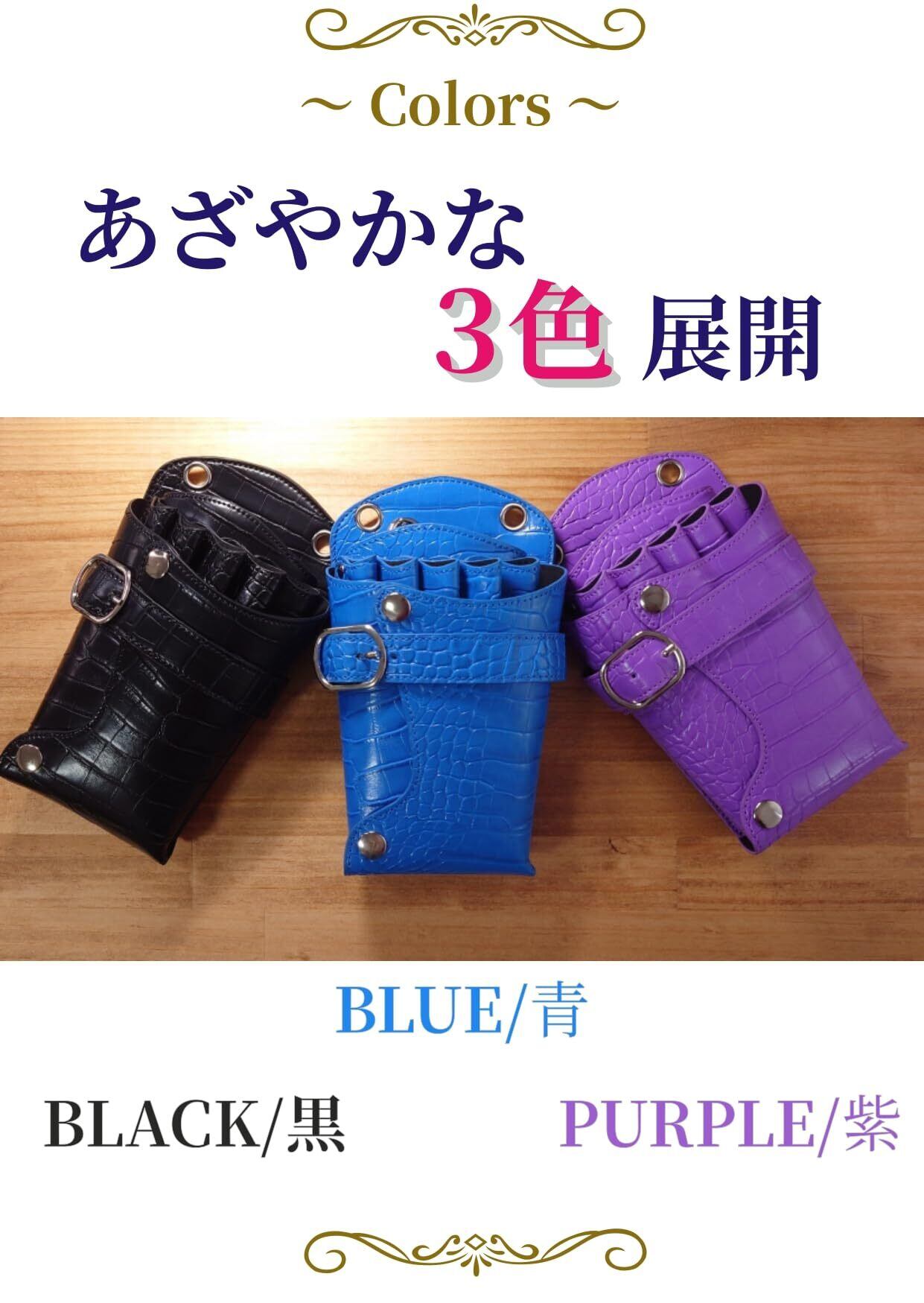 Addnew お手入れ楽楽 シザーケース クロコダイル調 5丁 選べる3色 美容師 トリマー 高見え (BLACK/黒)