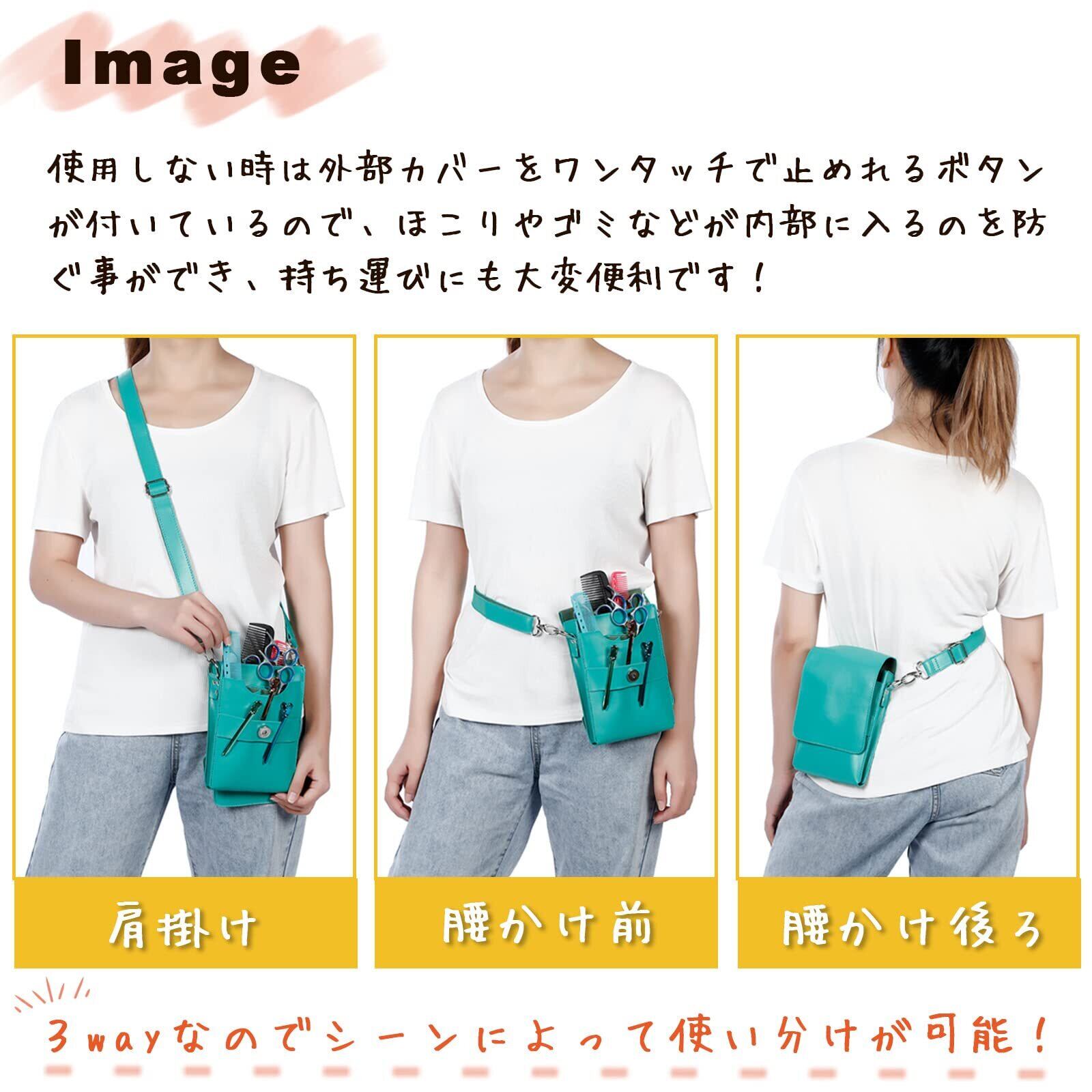 ショルダー付きの設計で、ウエストにも肩にも装着可能。使用するシーンに合わせて、快適に持ち運ぶことができるのが嬉しいポイントです。軽量でありながらも丈夫な素材を使用しており、忙しいサロンワークでもストレスなく利用できます。