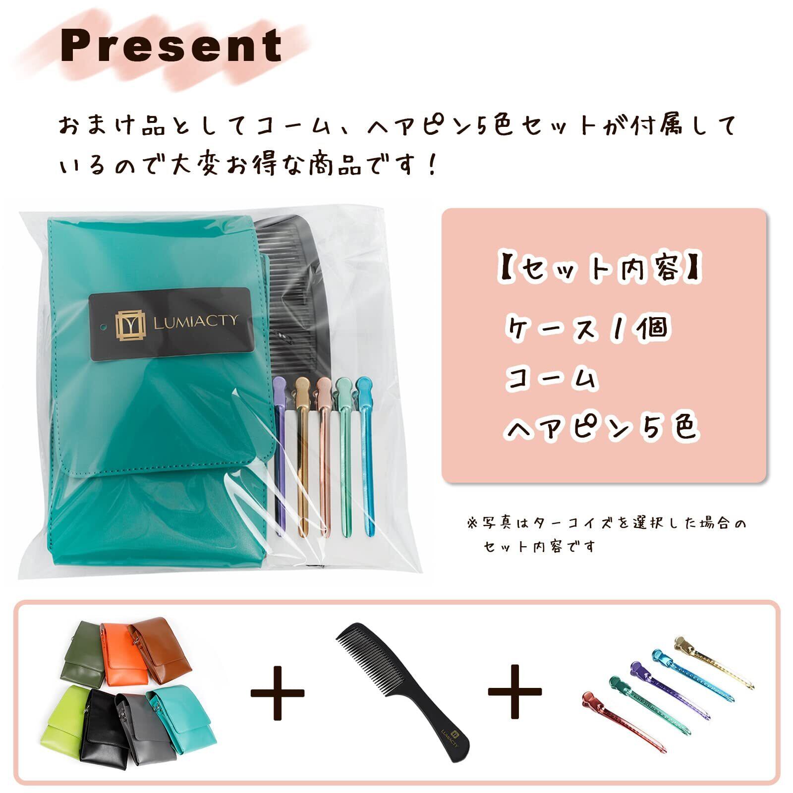 【素材】合成皮革 【重量】380g【カラー】オレンジ、モスグリーン、ブラウン、ブラック、ライトグリーン、グレー、ターコイズ【商品封入物】シザーケース、LUMIACTY商品タグ、ブランドネーム入り手持ちコーム(櫛)、ヘアピン5色セット