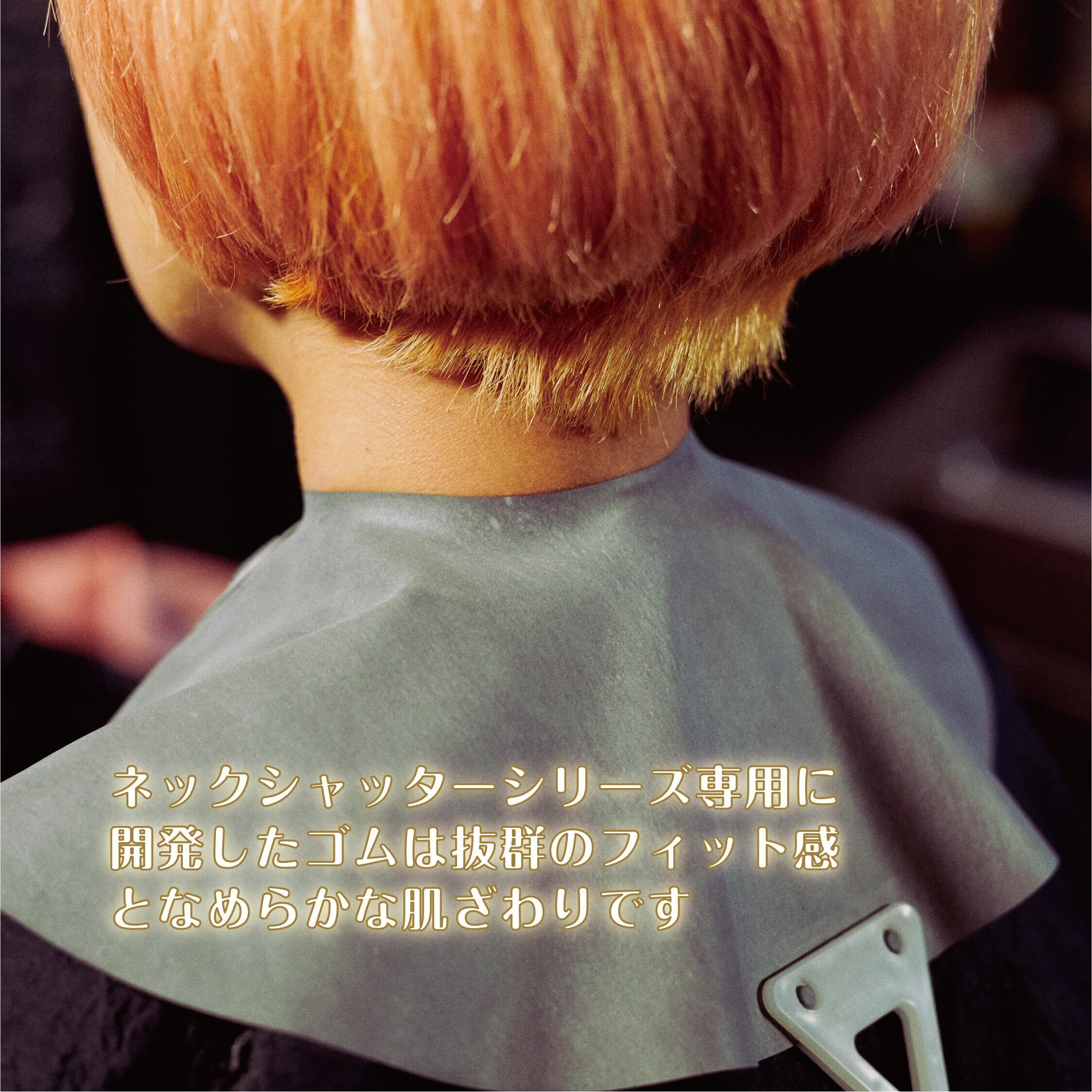 このネックシャッターは、軽量で柔らかな素材を使用しており、長時間の使用でも不快感を感じさせません。シンプルに首にフィットする形状で、髪の毛が下に落ちることを防ぐため、散髪や毛染めがスムーズに行えます。お子様から大人まで、幅広い世代に対応できる設計です。