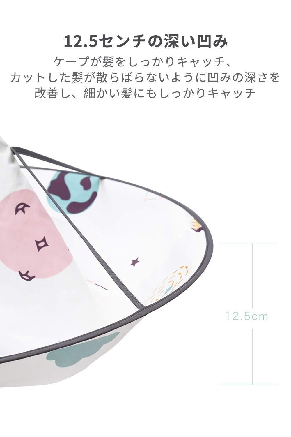 【人間化されたデザイン】頭から被っていただくだけの簡単装着ですので、ご自宅・お庭・ベランダなどで気軽にご使用いただけます。魔術貼り付き、首のサイズによって調整できます。髪のくずを首から服に落とすことが心配しません
