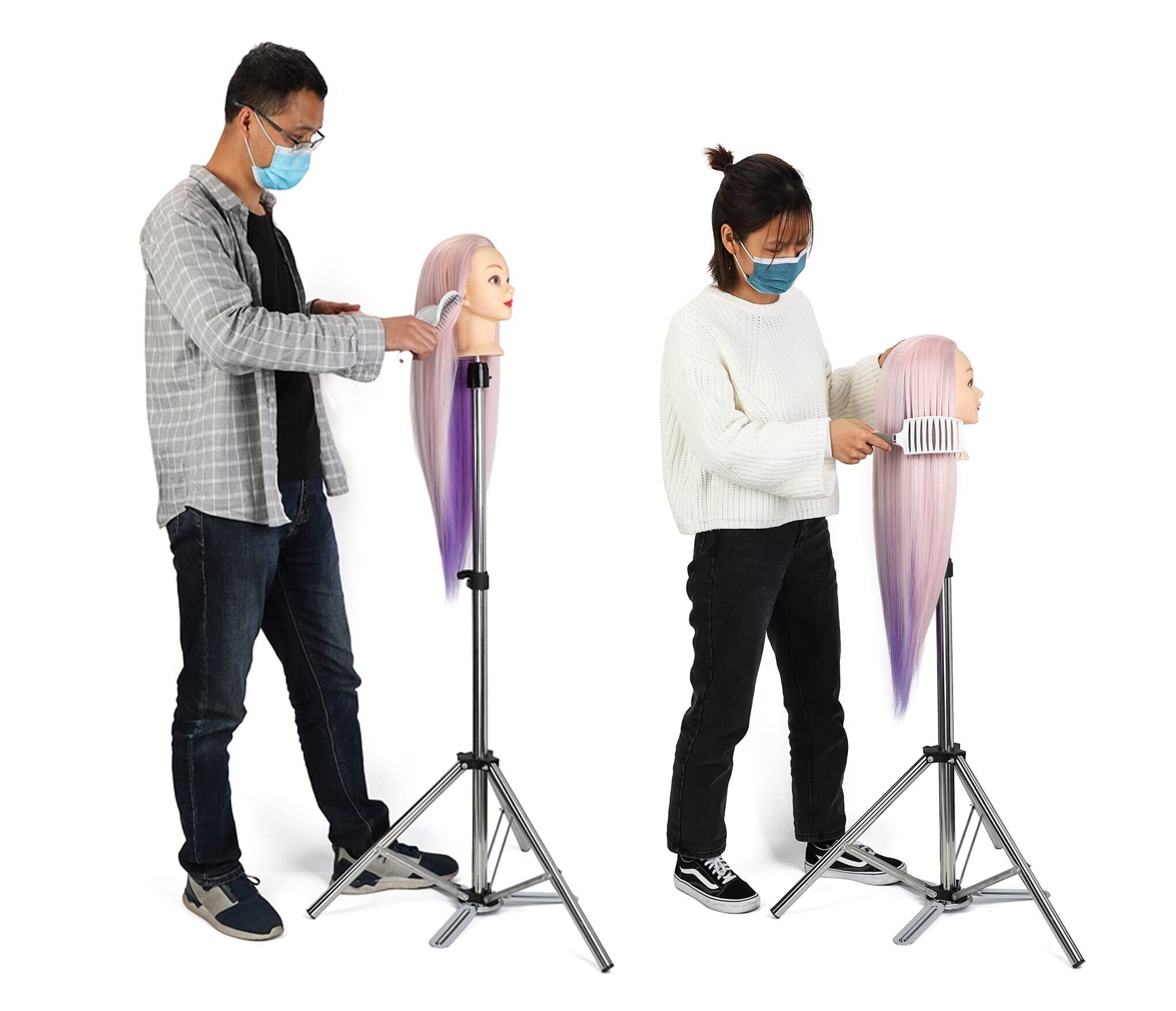 【可調節スタンドクランプ】マネキンスタンドを使用すると、より便利で360度に調整可能です。マネキンヘッドスタンドの中のネジを調節すると、高度を自由に調節できます。ウィッグに化粧、ウィッグカットなどの練習にとても便利です。